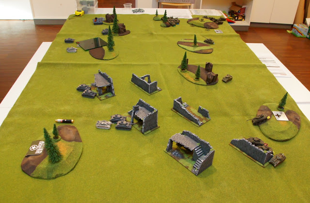Do wykonania tego zadania zostały 3 Shermany z plutonu "zielonego", Firefly z "niebieskiego" i czołg dowódcy kompanii i jego zastępcy ... i dwie tury czasu ... jeden StuG uszkodzony w pierwszej turze ...